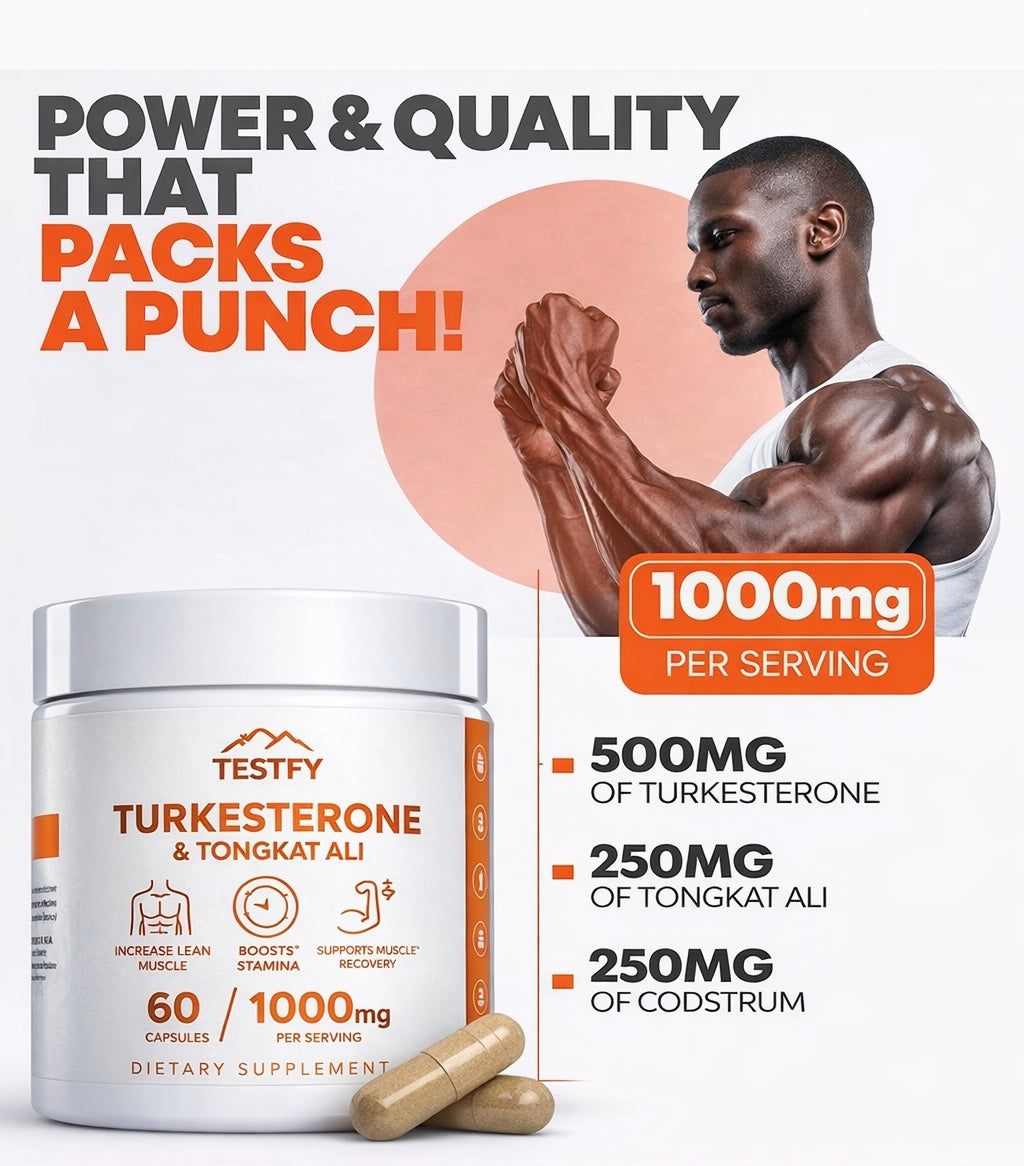 This powerful supplement blend promotes muscle growth, enhances strength, boosts energy levels, and supports male vitality, allowing you to perform your best both in the gym and daily life.
